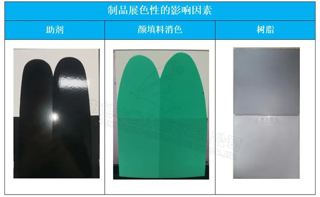在有色制品生產(chǎn)制備時可盡可能使用低消色的白色顏填料以及相容性較優(yōu)異的助劑以期達到降本增效的優(yōu)異展色作用。