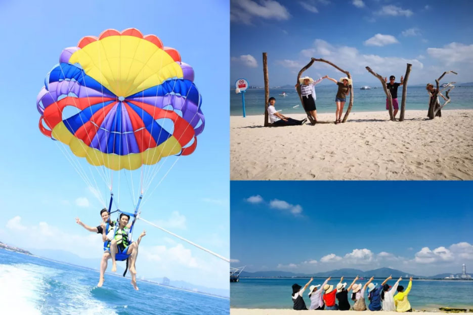 在蜈支洲島,靜可欣賞潔凈透明的海水,秀麗的風(fēng)景。動(dòng)可乘坐豪華游艇出海、玩轉(zhuǎn)帆船、浮潛、垂釣、背上滑翔傘,翱翔藍(lán)天。