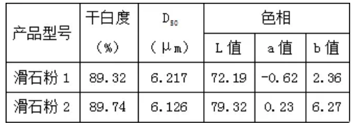 白度(whiteness)是表示物質(zhì)表面白色的程度,以白色含有量的百分率表示。非金屬礦物粉體的白度有干白度和濕白度之分,干白度是反映非金屬礦物粉體表觀的白色程度;濕白度是反映非金屬礦物粉體在油性介質(zhì)中,還原粉體原礦色相后的白色程度。故在實(shí)際應(yīng)用過程中,我們會(huì)發(fā)現(xiàn),兩支粉體的干白度檢測結(jié)果接近,但生產(chǎn)出來的成品顏色卻完全不同。為此,我司進(jìn)行了如下實(shí)驗(yàn):選擇兩支干白度比較接近的滑石粉,按同一配方比例填充于PET(聚對苯二甲酸乙二醇酯),粉體檢測結(jié)果詳見下表。