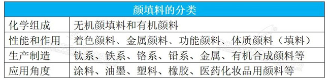 本文為了統(tǒng)一說法,我們將這兩者統(tǒng)稱為顏填料,可以按以下方式對顏填料進行劃分。