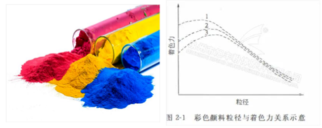 一般顏料著色力越大,著色劑用量越小,著色成本越低;著色力一般隨著顏料的粒徑減小而增加,當(dāng)粒徑降低到一定程度后,其著色力會因粒徑減小而減少,所以存在著使著色力更強的最佳粒徑。