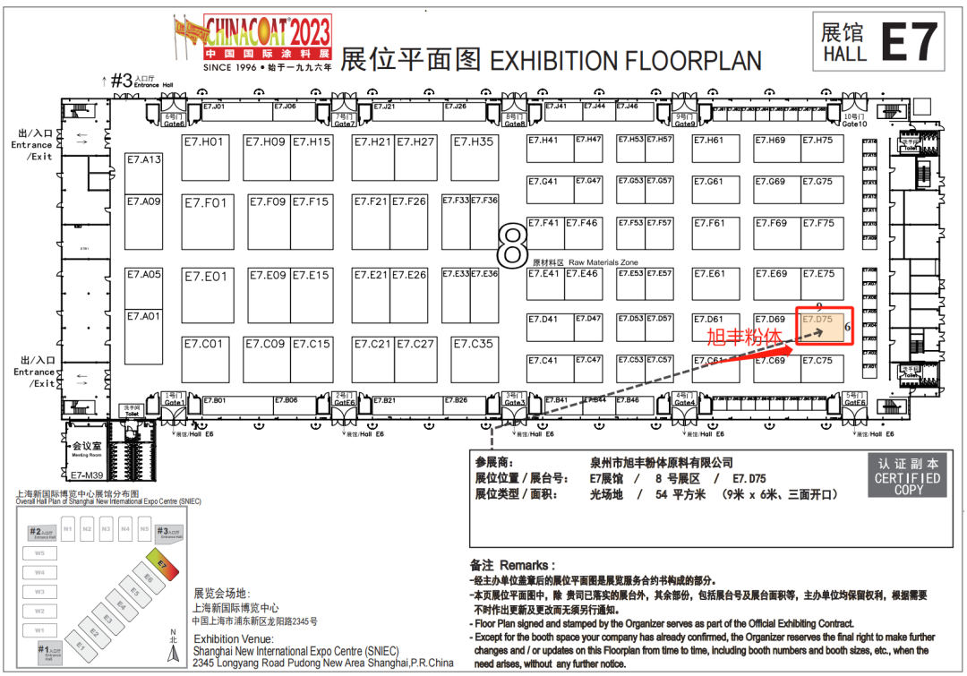 2023「中國國際涂料展 CHINACOAT」將于11月15日 - 17日在上海新國際博覽中心舉行。屆時(shí)旭豐粉體將攜涂料專業(yè)工程師、涂料領(lǐng)域相關(guān)產(chǎn)品解決方案及公司新品亮相,在此誠邀您蒞臨我司展臺(tái)參觀指導(dǎo)交流!